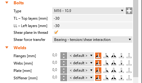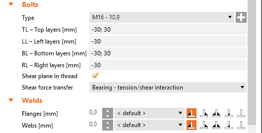 Property group Bolts – definition of bolts in connection – see Input of bolts by layers.