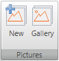 Commands in ribbon group Pictures can be used to work with pictures gallery.
