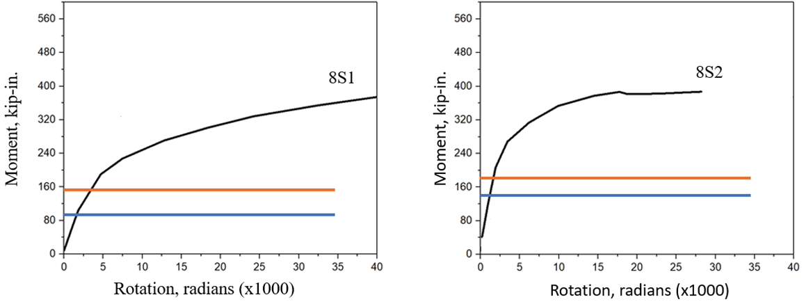 Moment-rotation relationship of Test No: 8S1 (left) and 8S2 (right)