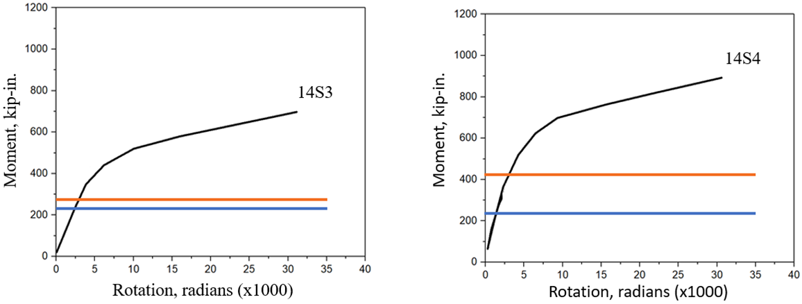 Moment-rotation relationship of Test No: 14S3 (left) and 14S4 (right)