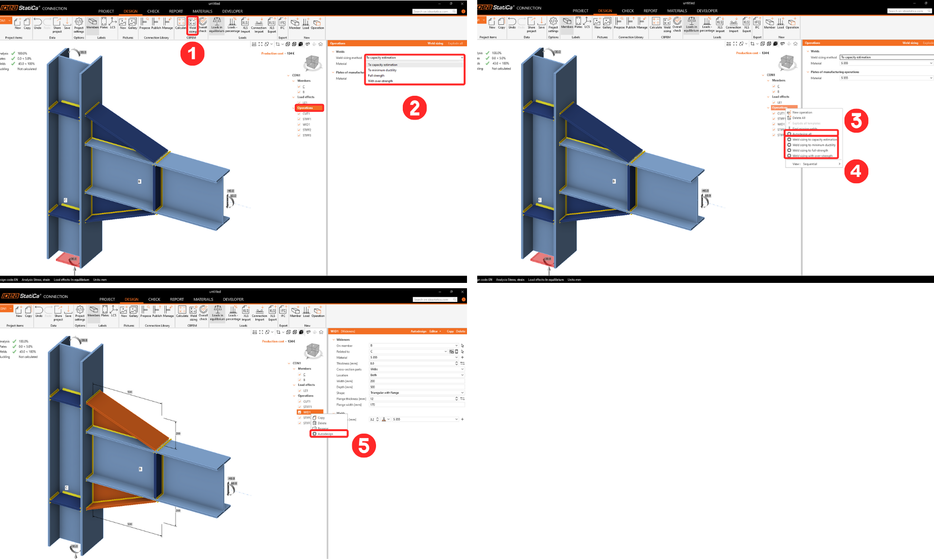 3. Sizes the fillet welds to capacity estimation