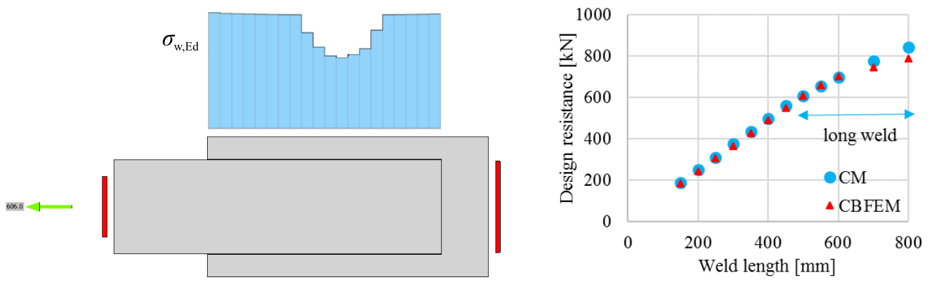 You can find a clear demo of how the stress develops during the loading as well as the distribution of the stress along the long welds is discussed in the How are welds modeled in IDEA StatiCa article.
