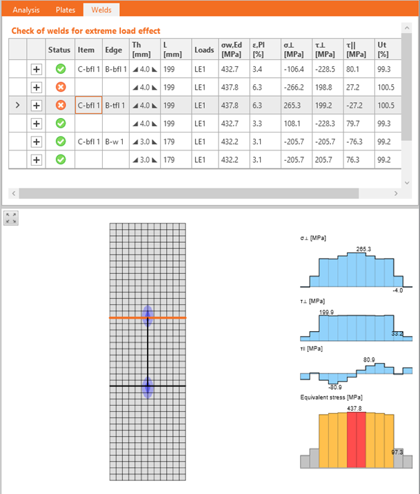 Also, the correlation factor βw can be modified from the default value of 0.8 to match with values for, e.g., stainless steel requirements (βw = 1.0 for steel weld strength lower than 360 MPa).