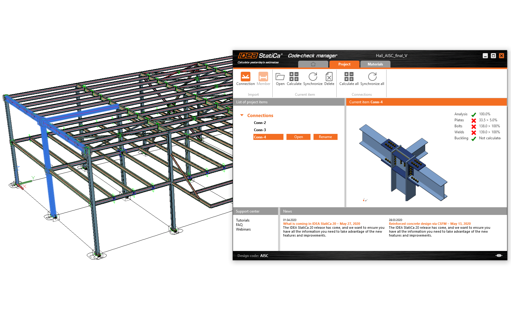 Join our Wednesday's regular webinars and find out how easy it is to export and manage your connections from your CAD software such as Tekla Structures and Advance Steel. We will take a look at the new features of CCM to improve your workflow. The new version IDEA Statica 20 brings a vast amount of improvements – CCM can now be used to export, manage, recalculate, or synchronize all connection items.