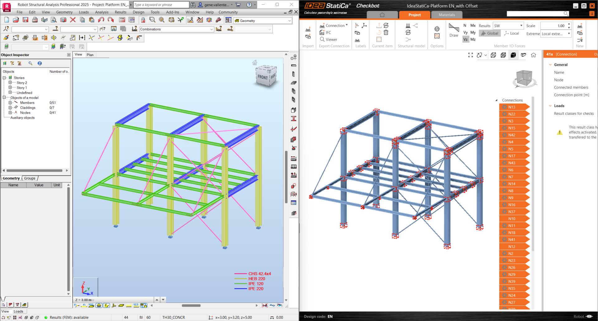 With IDEA StatiCa Checkbot, you can automatically import the model from your FEA or CAD and synchronize design data. IDEA StatiCa Checkbot lets you visualize imported loads and members in 3D, manage load combinations, and see all connection and member properties and statuses (checked/not-checked). This helps eliminate error-prone and manually repetitive work by extending your current workflows.