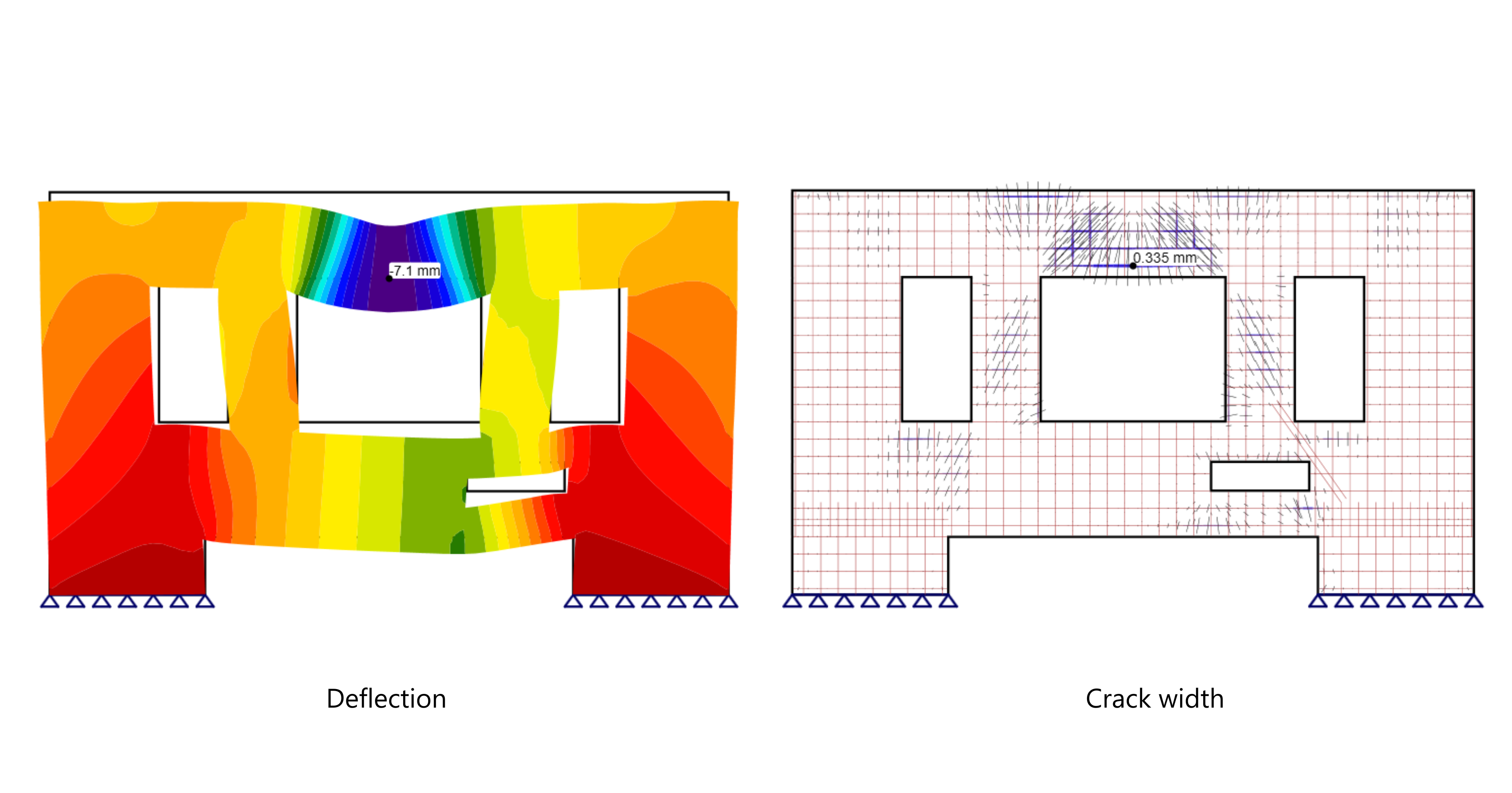 Once the analysis is complete, IDEA StatiCa Detail provides engineers with comprehensive results, including concrete and rebar stresses for ULS (Strength), as well as crack width and displacement checks for SLS (Serviceability). This increases design confidence and reduces the risk of, for example, cracking-related issues or excessive deflections.
